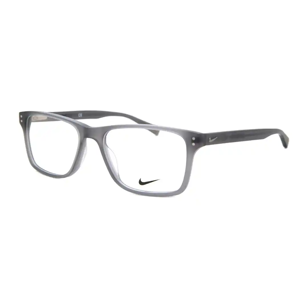 Óculos de grau masculino curvado Nike na cor cinza, ideal para homens que buscam conforto e estilo. Garanta uma visão nítida e alta qualidade em seu dia a dia.